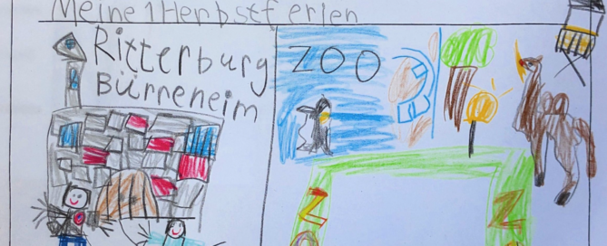 Die Kinder aus der Klasse 1b haben ihre Erlebnisse in den Herbstferien aufgeschrieben und aufgemalt. Hier finden Sie einige sehr schöne Arbeitsergebnisse. Am besten klicken Sie auf "Präsentationsmodus" bzw. "View Fullscreen", dann können Sie sich die Bilder der Kinder richtig groß anschauen.
