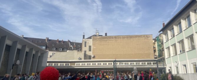 Am 11.11. erschallte pünktlich um 11:11 Uhr die decke Trumm! In den Fluren wurde ein erstes "Denn wenn et Trömmelche jeht" angestimmt. Alle Stenzis versammelten sich auf dem Schulhof, um den Start in die neue Karnevalssession zu feiern. Auf den Videos (s. u.) bekommen Sie einen Eindruck von der