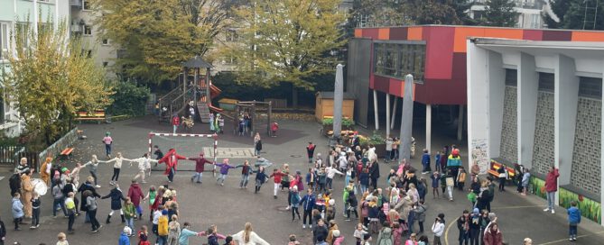 Als pünktlich um 11:11 Uhr in den Fluren vor den Klassen die "Decke Trumm" ertönte und mit Megafon "Denn wenn et Trömmelche jeht..." angestimmt wurde, war an "Unterricht" nicht mehr zu denken! Alle Stenzis strömten auf den Schulhof und feierten den Sessionsstart! Schauen Sie sich gerne die beiden Videos