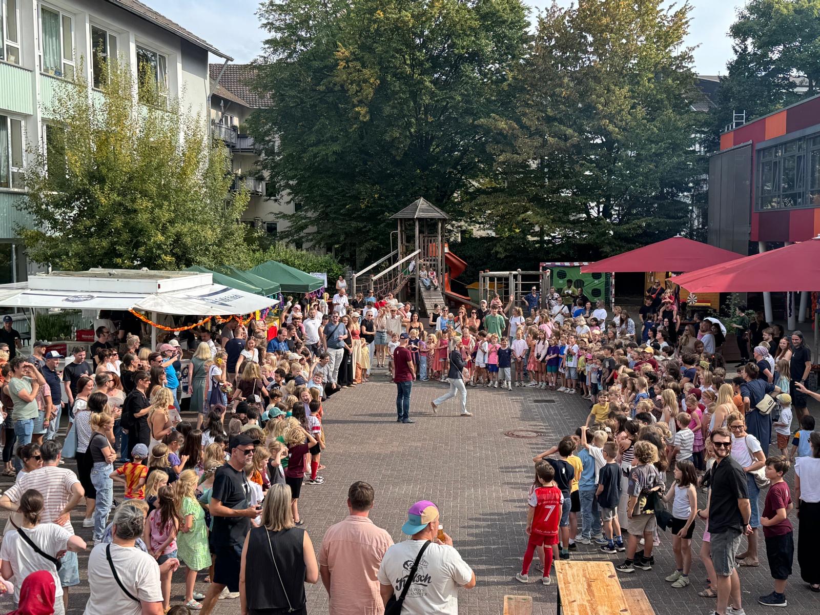 So lange haben wir uns darauf gefreut! Am Samstag, dem 20.09., war es dann endlich soweit: Bei bestem Wetter haben wir Stenzis unser Schulfest gefeiert. Weil uns jedes Jahr auch so viele Ehemalige und so viele Freundinnen und Freunde aus dem Veedel besuchen, kann man das Schulfest eigentlich auch als „Veedelsfest“ bezeichnen. Wir haben uns auf jeden Fall sehr darüber gefreut, dass wieder so viele Besucherinnen und Besucher da waren. Neben den Spezialitäten vom Grill von der Firma Odenkirchen gab es noch viele weitere Leckereien zu essen und zu trinken. Die Kinder hatten große Freude an den vielen Aktions- und Spieleständen, die von der OGS und von den Klassen vorbereitet worden waren. Herzlichen Dank an die tollen Stenzi-Eltern, mit deren Unterstützung das Schulfest wieder so ein großer Erfolg geworden ist!